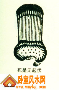 死龙格,峰峦模糊,脚手仿佛,本体直硬之谓。《入式歌》同“死是无起伏”,盖其龙白离祖以来,粗顽臃肿,无起伏,无摆折。其势如鱼失水,如木无枝,如顺水随流,如死鳅死鳝,而皆无生意。此格最凶,不能融结。纵有形穴,必为虚伪。若误下此地,主穷苦下贱,遂以死绝。虽作神坛社庙,也不显灵。