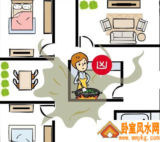 A房子中央是全屋的动线枢纽,厨房若设置在中央,恐造成油烟废气滞留、飘散在全屋内,久了自然使屋内氧气不足,影响全家运势。