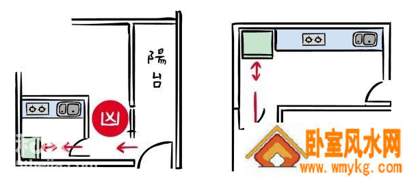 A厨房是长方形或正方形并不影响风水,煤气炉若对到门,尤其是后门,意指散财、犯小人,是不太好的风水。