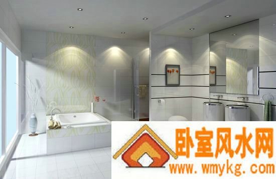 卫生间五行属水,所以卫生间的颜色最好选择属金的白色及属水的黑色、蓝色,既高雅又能产生安宁静谧的感觉。淡绿色、淡、淡蓝色、乳白色等也都给人以清爽、自在的感觉,比较适合在卫生间使用。应该避免使用诸如大红色等刺眼的色彩,令如厕者产生烦躁的心理。