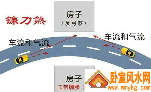 镰刀煞是指河流或道路反弓形成的煞气,会有败运或血光之灾。